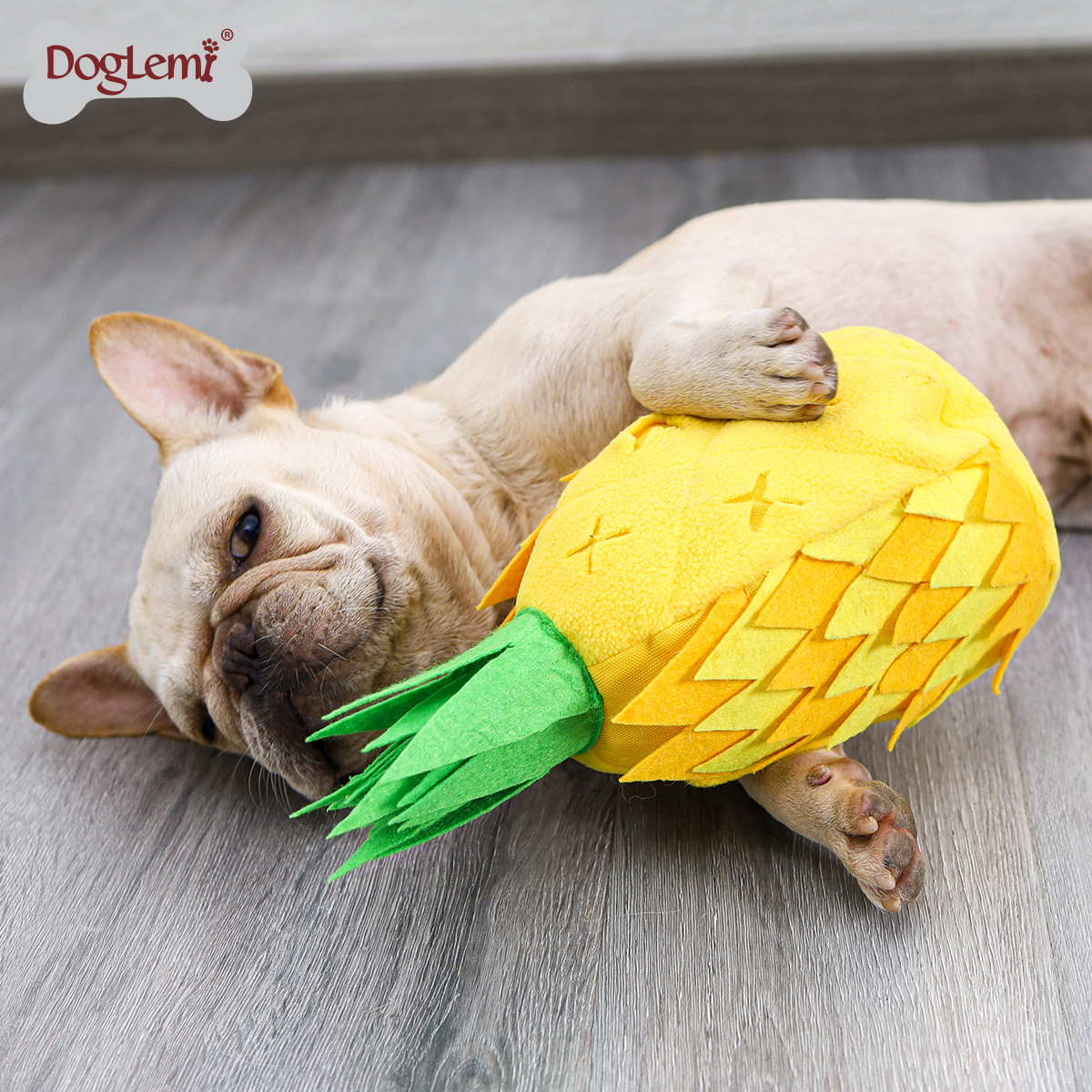 | 1. Le tissu principal du jouet renifleur de chien ananas est une laine polaire et un tissu en feutre, doux et résistant aux morsures |